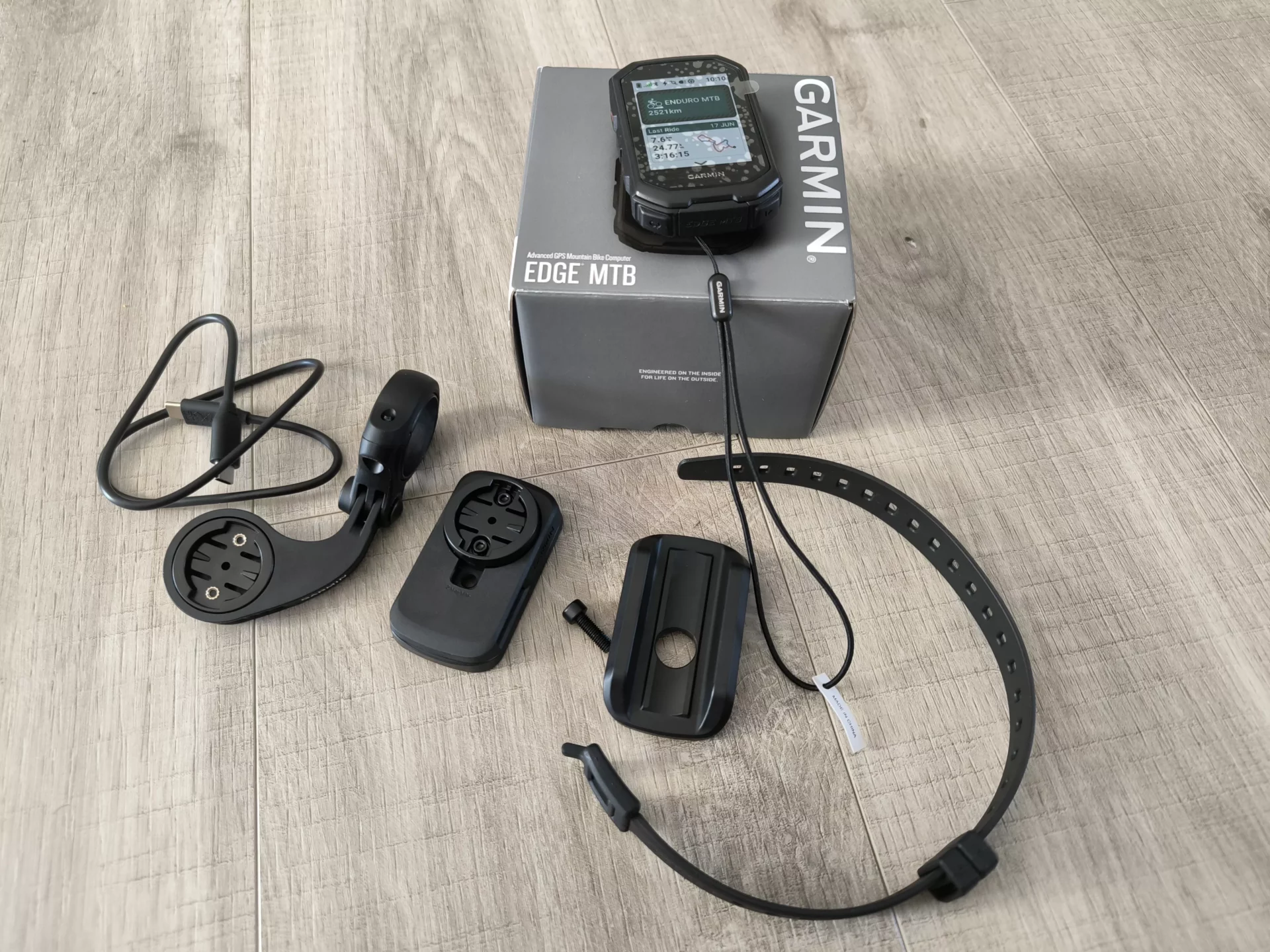 Tak se podívejme do krabičky ve standardním šedém designu. Uvnitř vedle samotného přístroje najdete celou paletu úchytů, aby každý dostal, co žádá. My závodníci jsme bez váhání zvolili pacičku, aby computer čouhal dopředu před představec. Na silnici jasná volba, v terénu si ale musíte věřit, že to nepoložíte a neulomíte ho.