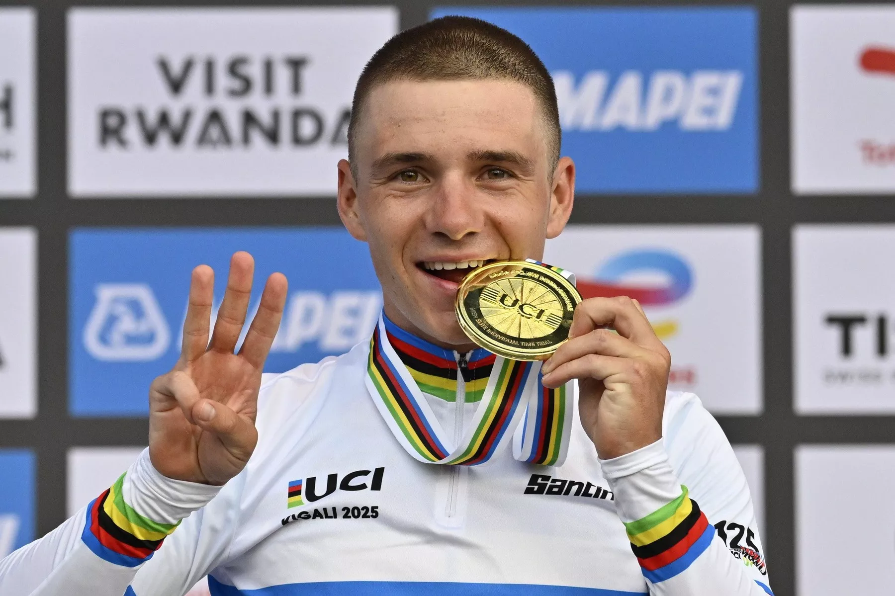 „Okouzlující společnost. Je pro mě čest, že jsem se dostal na úroveň Martina a Rogerse. Za rok se vrátím, abych byl prvním, kdo vyhrál čtyřikrát v řadě. Šel jsem s tímhle vědomím do závodu už tady v Kigali,“ usmál se Remco Evenepoel, který je nejmladším mistrem světa v časovce, když na podzim 2023 vyhrál ve věku 23 let a 198 dnů.