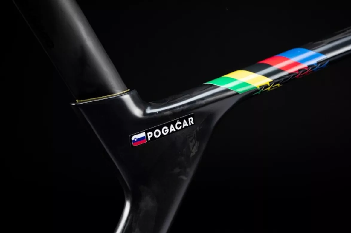Kolo z Tour de France zůstalo v továrně italského výrobce. Slovinec pak věrnou kopii použil při vítězství na mistrovství světa v Kigali či Monumentu Kolem Lombardie.