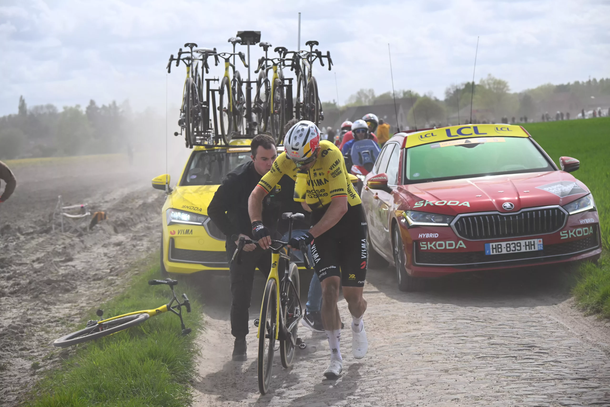 Právě Belgičan byl prvním z favoritů, jehož potkal defekt. Následoval jej Tadej Pogačar, který musel využít univerzální kolo a následně vyplýtval obrovské množství energie i všechny domestiky, aby se vrátil na čelo. Popravou nadějí pro Mathieu van der Poela byl obávaný Arenberg: dva defekty v krátkém sledu znamenaly manko přes dvě minuty.