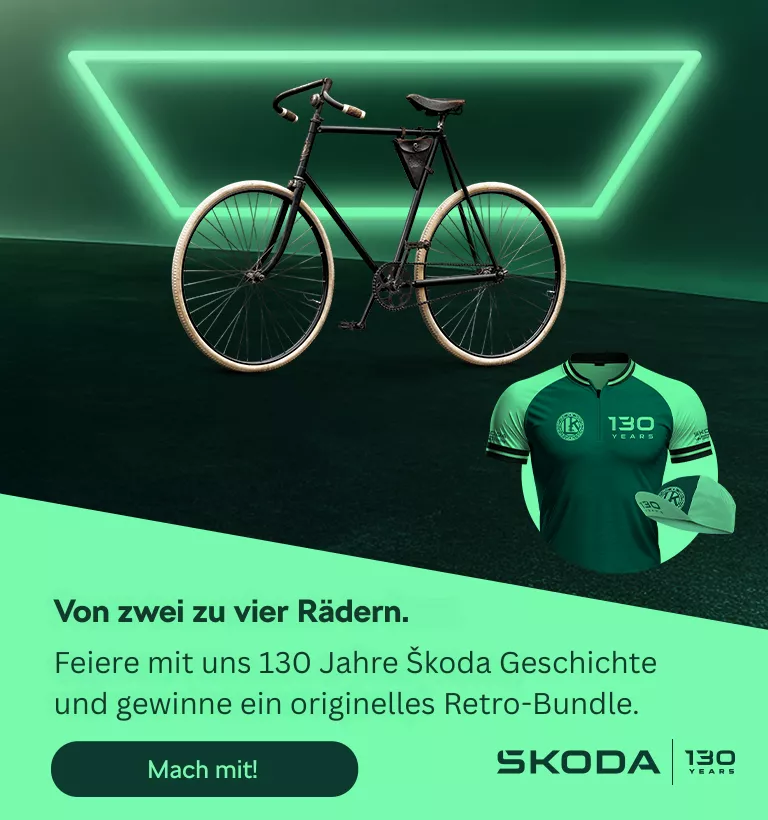 Vor 130 Jahren legten zwei leidenschaftliche Radfahrer mit einer Vision den Grundstein für die Marke Škoda. Tauchen Sie kurz in ihre Geschichte ein – und sichern Sie sich die Chance auf einzigartige Preise.