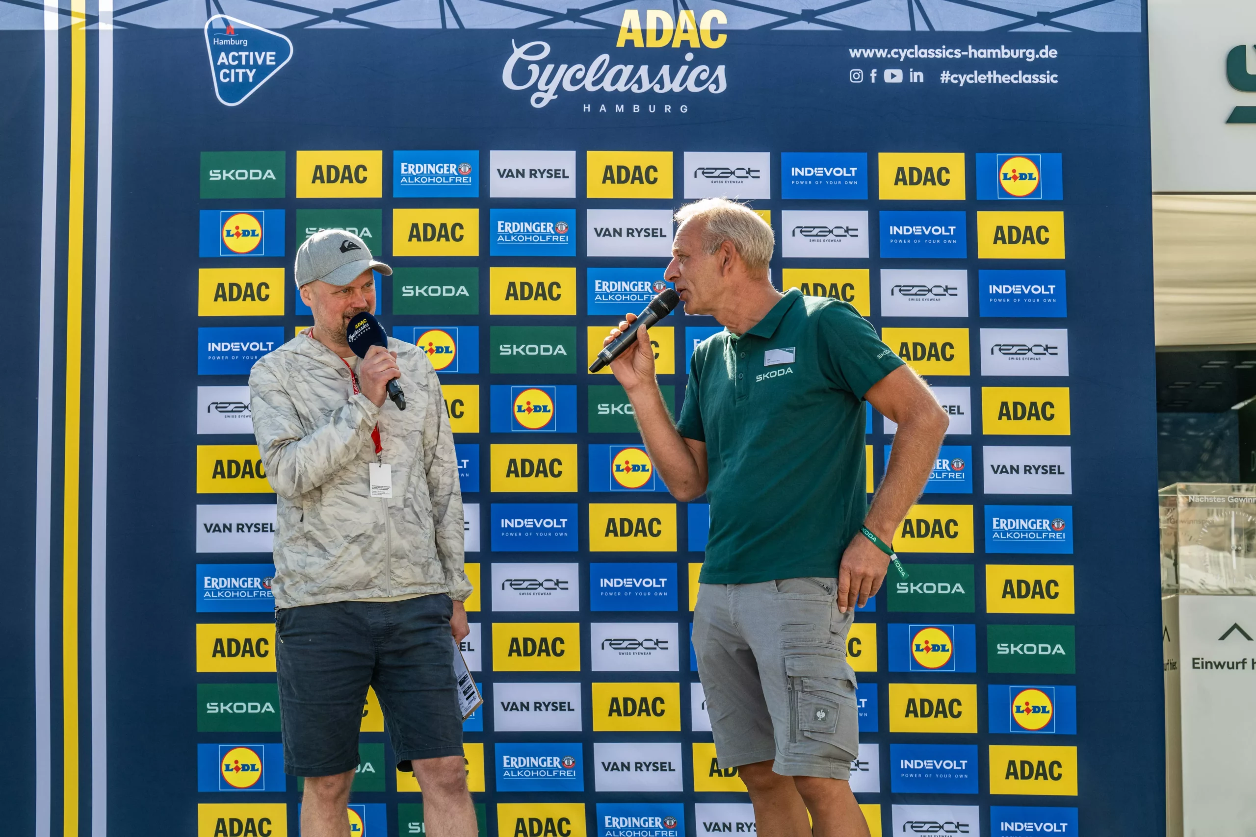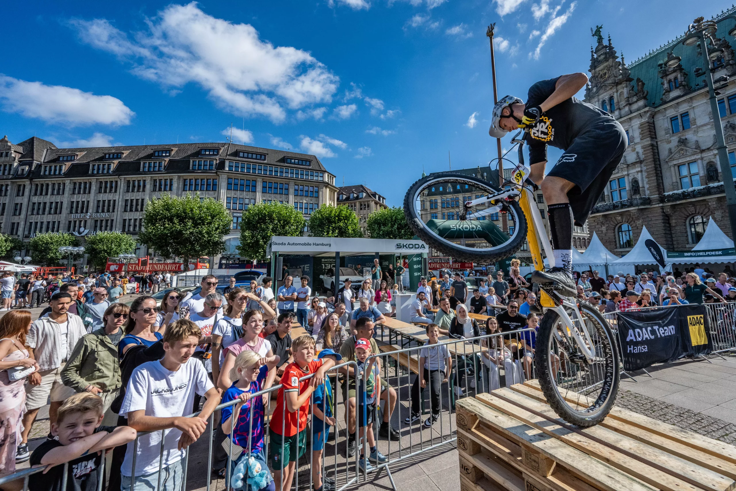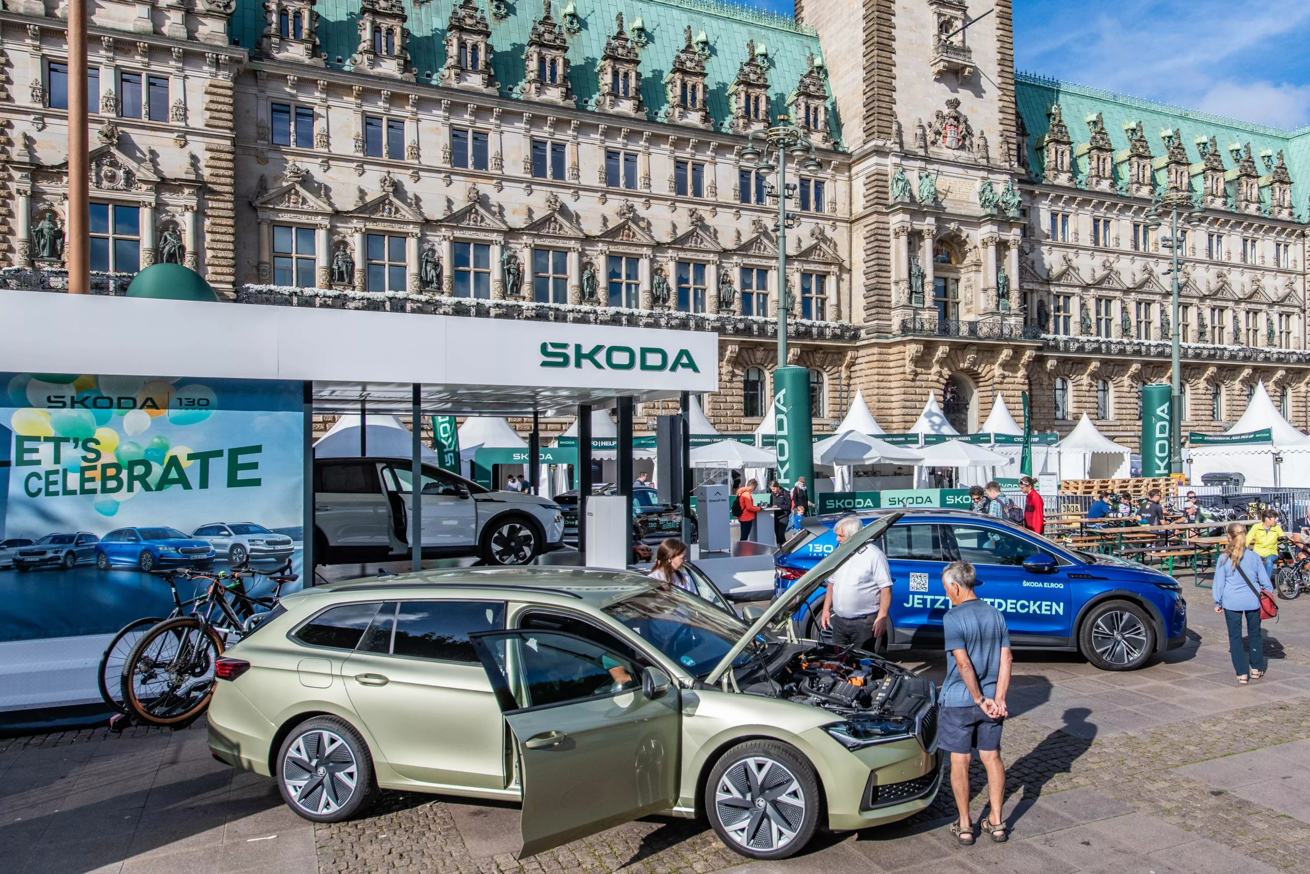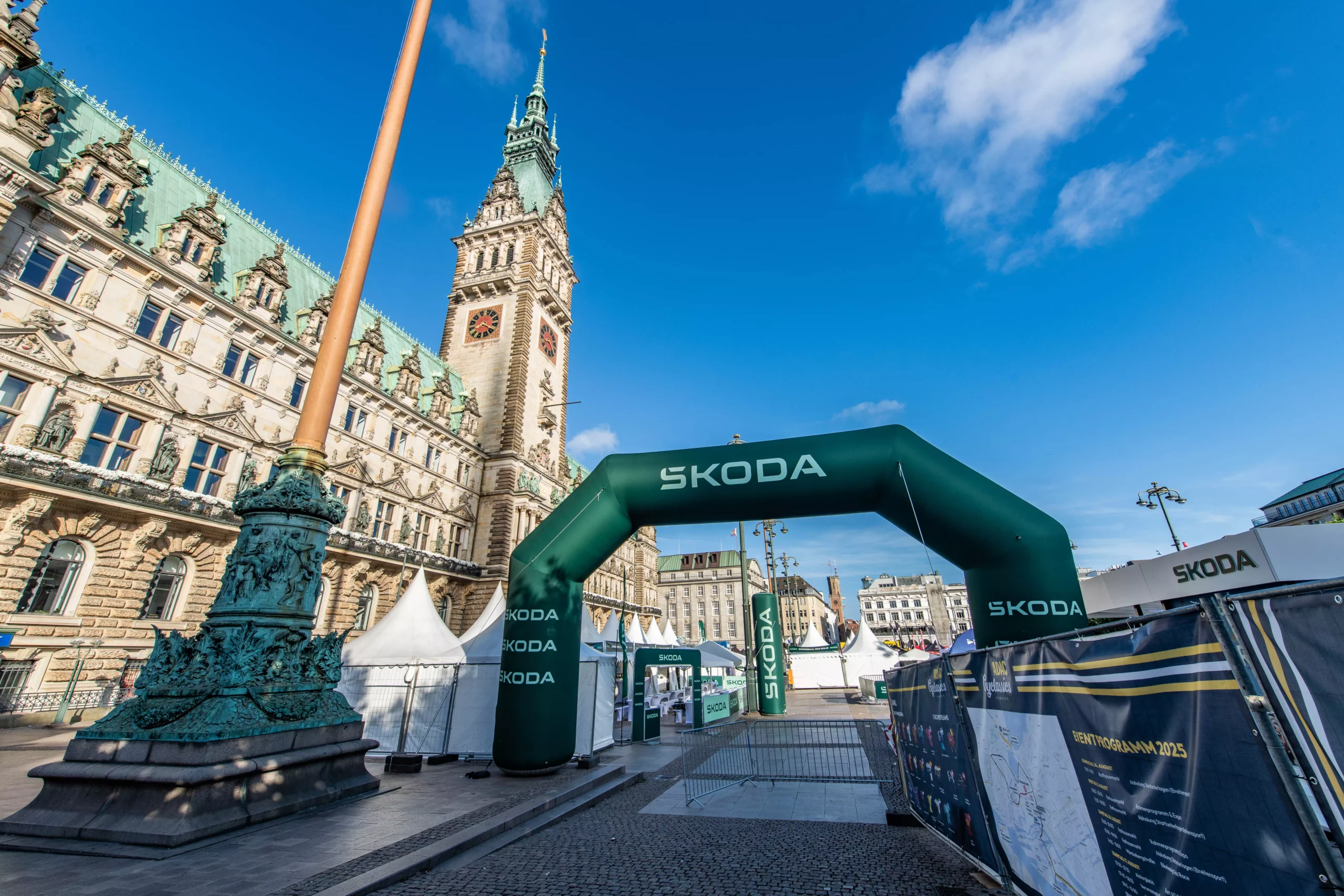 Škoda unterstützte nicht nur mit einer starken Fahrzeugflotte das Renn- und Organisationsgeschehen, sondern war mit über 130 Teilnehmer:innen im Škoda Veloteam selbst am Start und mit der Škoda Roadshow auf dem Hamburger Rathausmarkt vertreten.