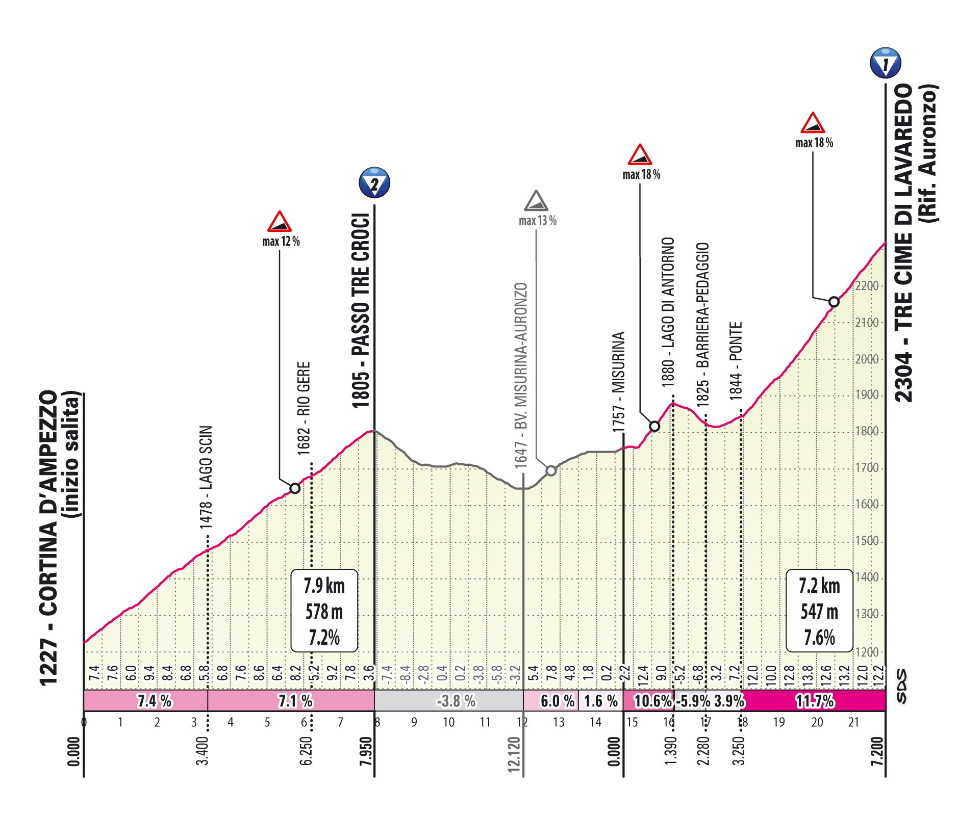 En el Giro de 1967 se estrenó Tre Cime di Lavaredo. Los números de sus cuatro kilómetros finales, después de la bajadita del Lago di Antorno, son un 11,7% de media, sin descansos y con rampas del 18%. Allí en cada tornanti puedes casi tocar con la cabeza el siguiente. Y como solo hay una carretera y no tiene descenso, tenía que ser final de etapa por obligación.