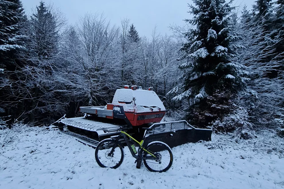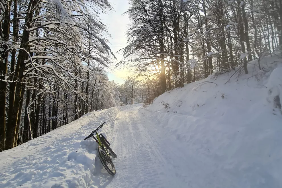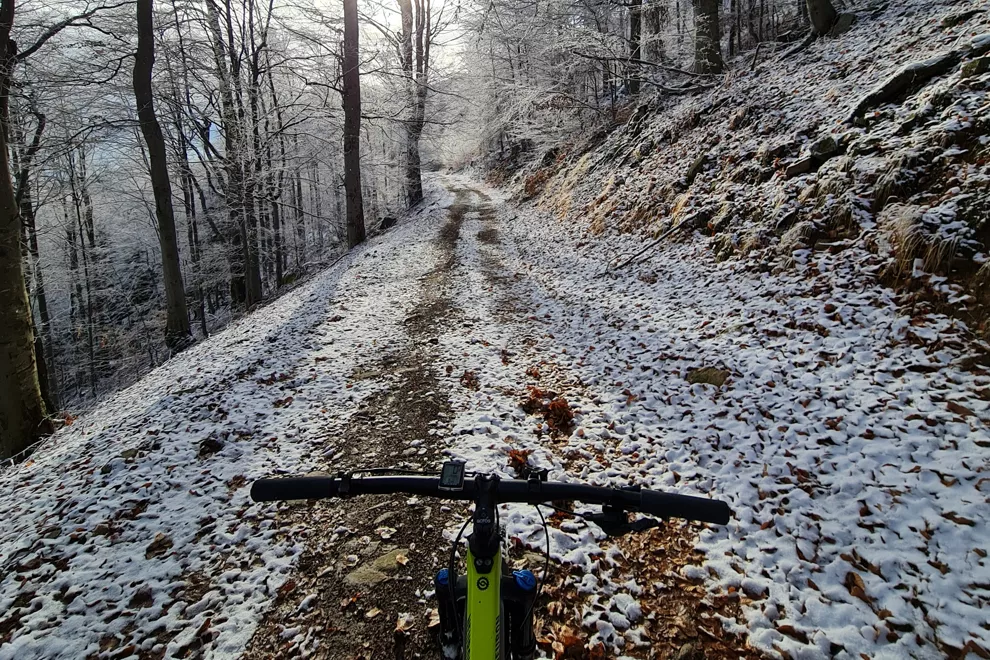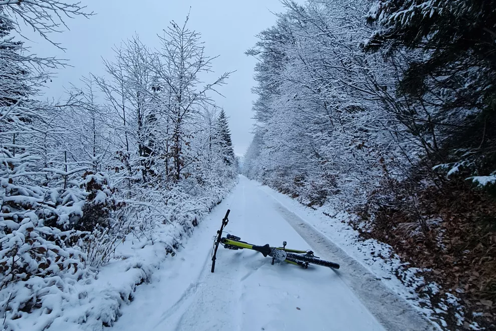 Hneď, ako sa skončí jeseň, teším sa na prvý sneh. Je to obdobie, keď sa ešte nedá lyžovať, no zároveň môžeme využiť ideálne snehové podmienky. Zatiaľ čo sneh ešte nie je roztopený do ľadu, je skvelým podkladom pre jazdu. Pri horskom bicykli stačí znížiť tlak v plášťoch, čo je kľúčový faktor pre dobré držanie stopy.