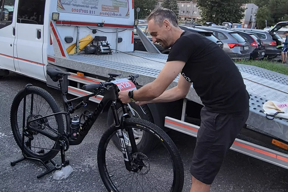 Nálada pred štartom je fajn, na parkovisku sú známe tváre, debatujeme. Pozerám na plášte: nemám to mäkké? Požičiam si veľkú pumpu a trochu dofúkam, no trochu viac, ako som mal…