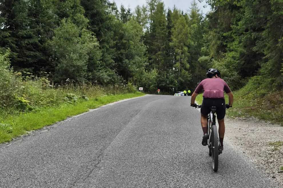 Prichádzame na asfaltku, pridávam v tempe, dobieham Mira, zverím sa mu, čo sa mi stalo. Ideme spolu, pekne sa predierame pomaly dopredu – tak ako minulý rok, keď sme išli spolu. Asfaltka sa zmení na štrkovú cestu, po ktorej ďalej stúpame. Onedlho tlačíme. 😀