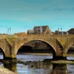 This 21th section of St Ninian’s Way starts in the centre of Ayr at the south end of the Auld Brig. Cross over the river and then go left to join the A719 (50 m). Pick up the signposts for Ayrshire Coastal Path (ACP) and National Cycle Route 7. Proceed north through town to sea (1 km), then along the coast to Woodfield (500m) where cyclists can split off and continue along NCR 7 to Troon. Walkers can continue along the coast on the ACP past St Ninian’s Chapel (1 km), past Prestwick and the international airport (1 km), the Royal Troon golf course to the centre of Troon and Troon Old Parish Church.(8km).