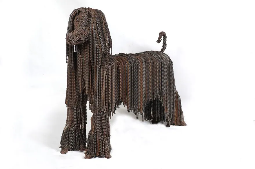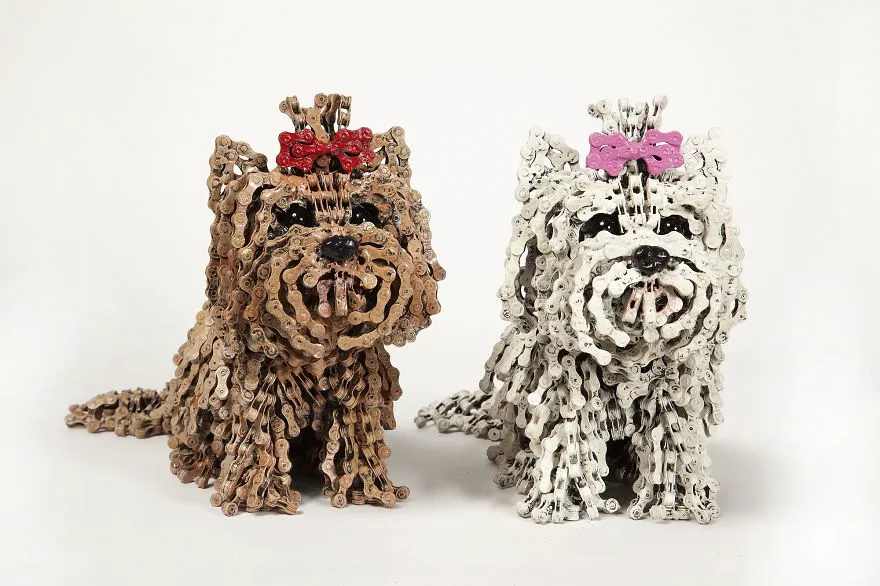 All her “breeds” have one thing in common – all of them were made solely of discarded bicycle parts like seats, pedals, cranks, bells but mostly old chains, some even rusted. The cute animals look like they’re ready to hop away for a walk in the nearest park and have life-like proportions of pets we indulge in our homes.