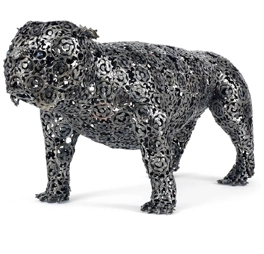 Nirit’s work started with a tough and intimidating Rottweiler that was followed by other heavy metal mates. Long, shaggy hair has been crafted out from the chains, sometimes coloured, sometimes in a natural finish, giving the dogs a rugged look. After experiencing success as a bridal gown designer, Nirit Levav decided to create the dogs with a cycling pedigree for a collection titled “HOW! WOW!”. Even though there’re no reports stating if the dogs can bark, we can imagine hearing them squeaking and creaking when they’re running out of grease.