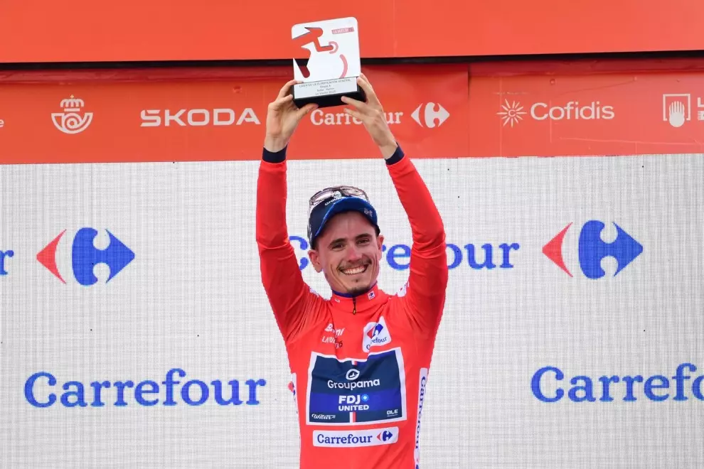 He was then tied with Vingegaard for the race lead in terms of time, but stood second in the GC because of comparative placements in earlier stages. But the party continued for Gaudu after the bunch sprint finish of Tuesday’s stage 4, in which he finished 25th, the same time as Vingegaard. But the Dane finished 42nd, far enough behind the Frenchman to reverse the placement advantage and put Gaudu into the race leader’s red jersey, a first for him in a Grand Tour. And he achieved that on home soil, in the French town of Voiron, where the stage finished after the Vuelta had spent the first three and a half days in Italy.