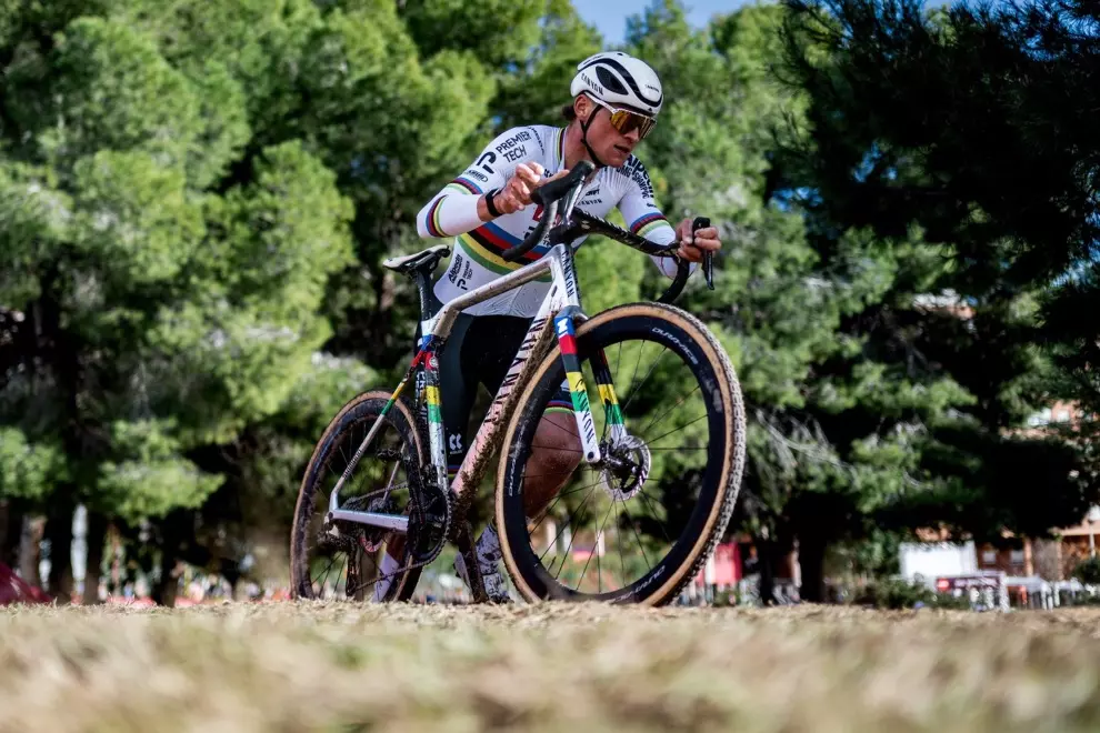On a fast but damp course on a typically hot day in southern Spain, van der Poel (Alpecin–Premier Tech) let himself be pulled over the first of eight laps by teammate Tibor del Grosso, who managed to open a gap on everyone, then took off on the climb to the finish line and was never troubled again. His lead over a three-rider chase group at the end of lap 2 was 29 seconds. It ballooned to 47 seconds at the end of lap 4, when the chase group had grown to double figures, and he coasted from there, doing a one-handed wheelie for the fans as he crossed the finish line.
