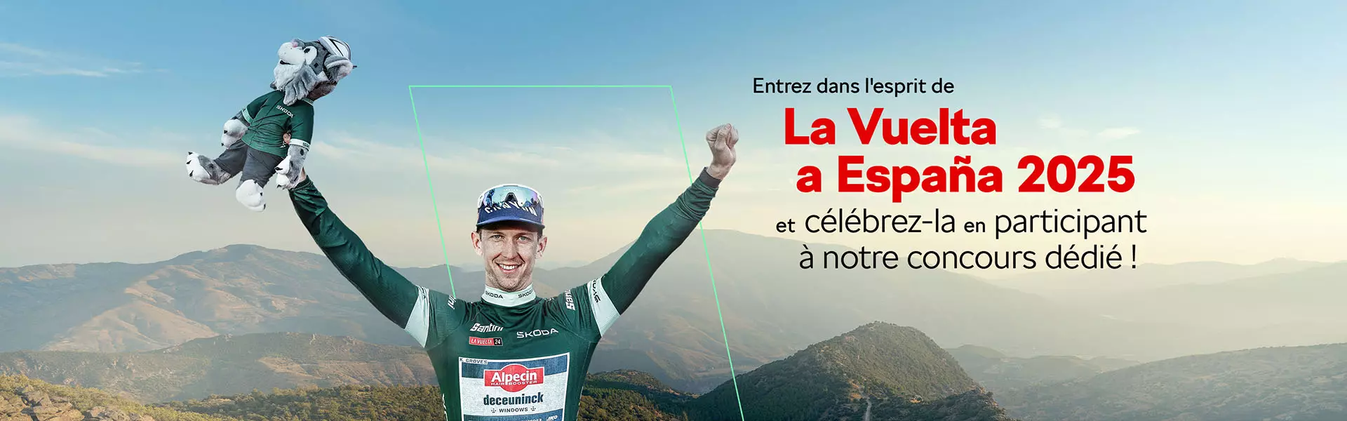 Vous pouvez compter sur nous pour vous tenir au courant de l'actualité de La Vuelta et pour vous proposer le concours qui vous permettra de remporter de superbes prix.