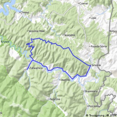 Trasa pasmem OTRYTU przebiegająca przez: Sękowiec – rezerwat Hulskie – Smolnik n.Sanem – Dwerniczek – Dwernik – Chmiel – Sękowiec.